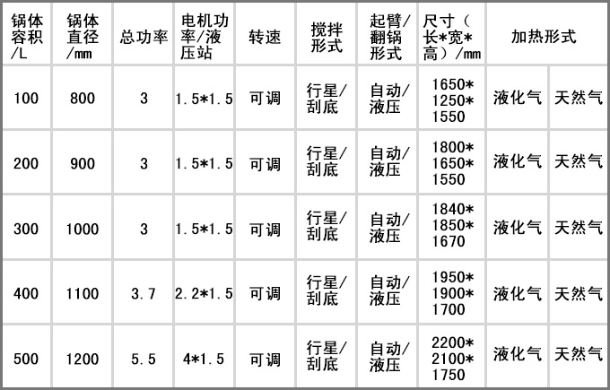 本產品以液化氣、天然氣、煤氣為熱源,使用方便,燃燒充分,無煙塵,環保無污染。自然風加熱或鼓風機加熱,火焰大小可調。采用獨特的節能燃燒器,升溫速度快,鍋體受熱均勻,溫度高,鍋面可達數百度。火大且猛,熱效率高,較同類產品提高25%左右,不受工廠電壓的限制。打開點火閥,點燃燃燒器,人工加入食用油,待油溫達到烹飪溫度時,加入適量的物料。自動攪拌,使物料在鍋內均勻受熱。待物料加工完畢后,關氣熄火,液壓傾斜倒料。